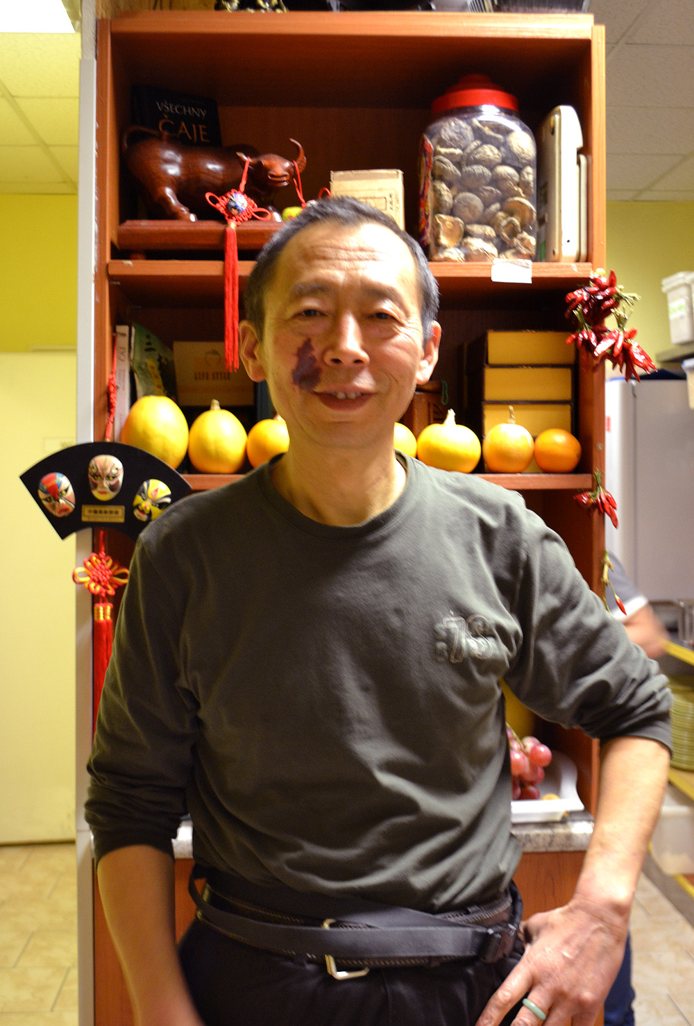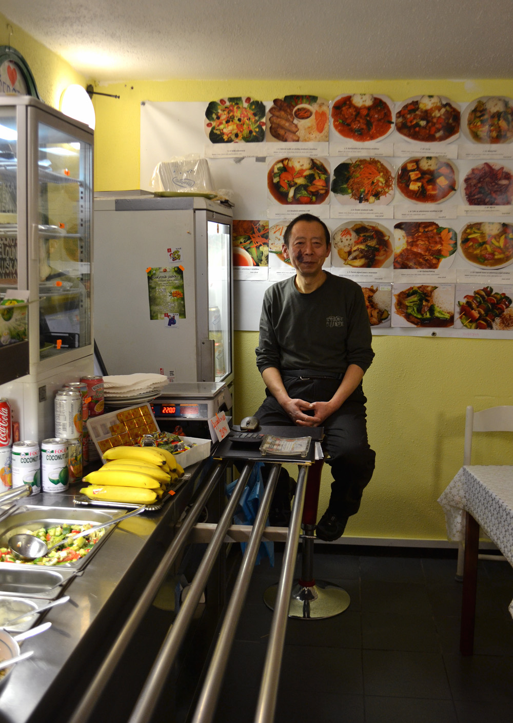 Jian Guo Chen in his vegan restaurant Vegetka. Photo: Barbora Sajmovicova, 2016, Prague.