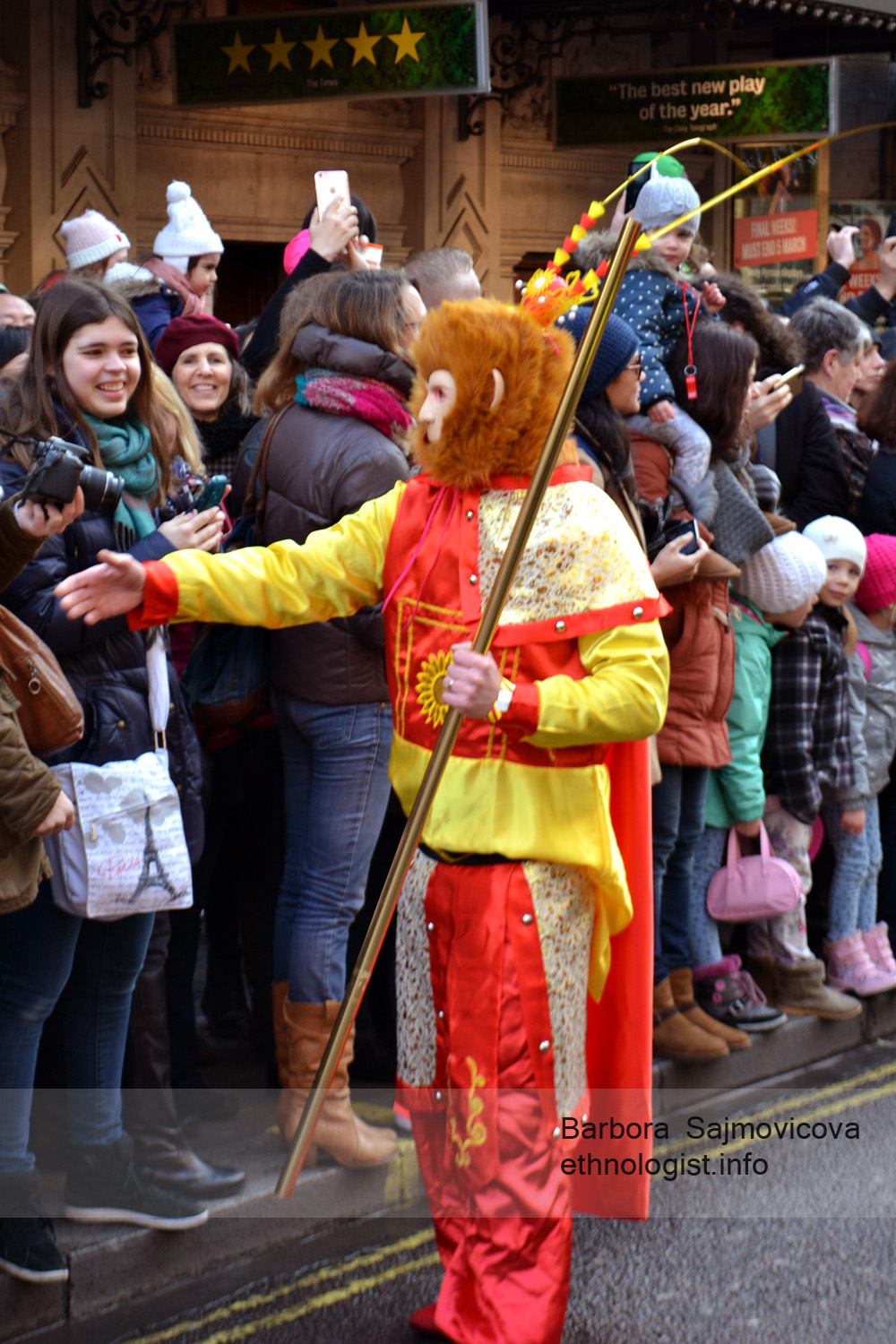 Fire Monkey wishing happy Chinese New Year during traditional celebration near Chinatown in London. Photo: Barbora Sajmovicova, 2016, London.