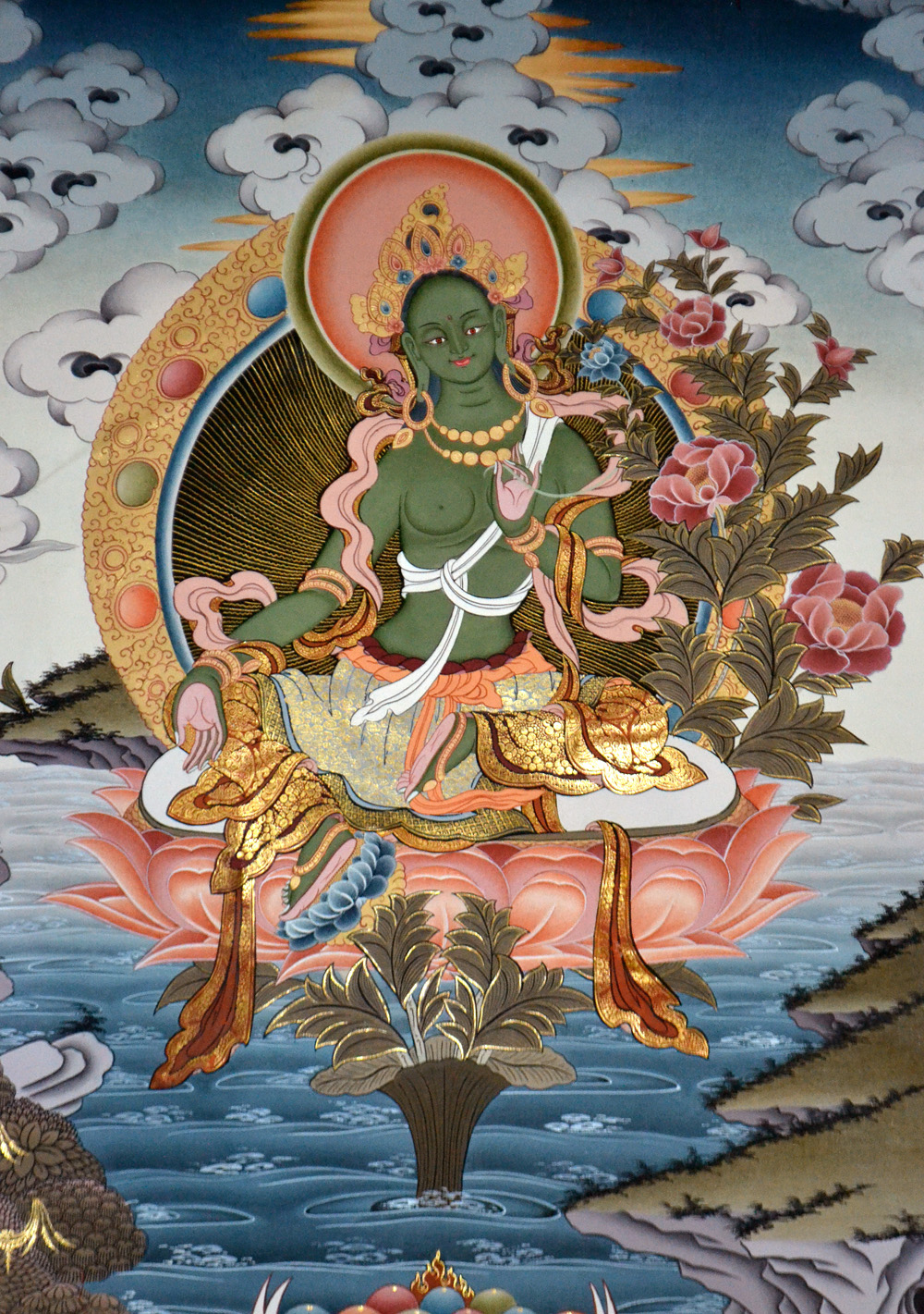 Green Tara in Vegetka is depicted with one foot in the lotus position and with the other leg up and ready to intervene at any time, for good and to help all sentient beings. Photo: Barbora Sajmovicova, 2016, Prague.