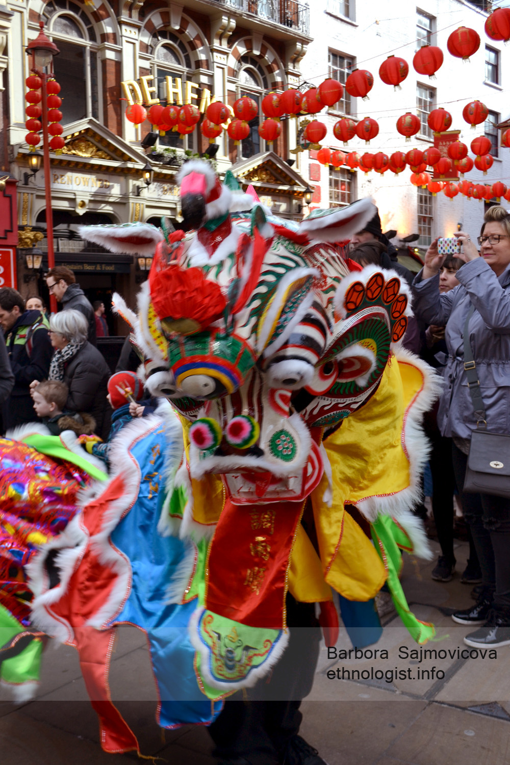 Traditional celebration of Chinese New Year in Chinatown in London. The dragon visited houses and shops, danced in front of them and wished all the best for the Chinese New Year of the Fire Monkey. Photo: Barbora Sajmovicova